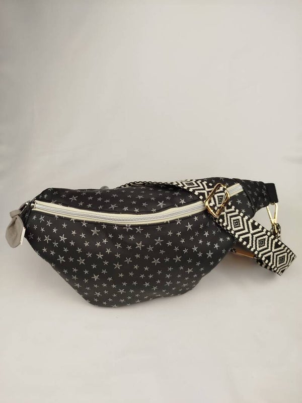 Ce sac banane au design sobre et moderne est confectionné à la main avec un mélange de simili cuir et de tissu coton, pour un rendu à la fois élégant et décontracté.