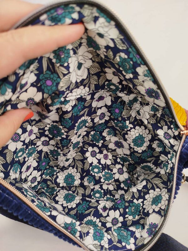 Ce sac banane au design sobre et moderne est confectionné à la main avec un mélange de velours et de tissu coton, pour un rendu à la fois élégant et décontracté.