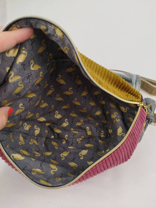 Ce sac banane au design sobre et moderne est confectionné à la main avec un mélange de velours et de tissu coton, pour un rendu à la fois élégant et décontracté.